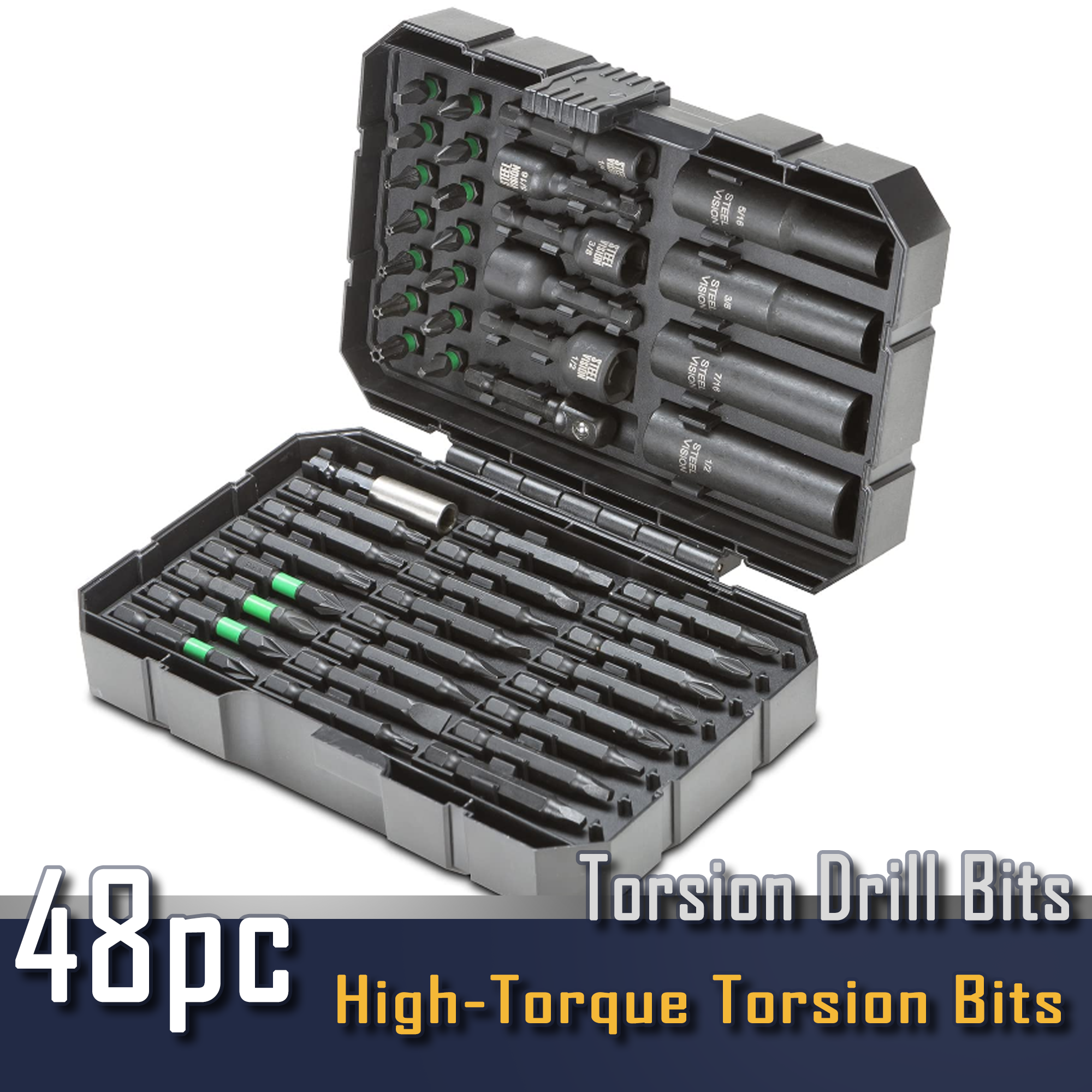 Details: The Steel Vision Tools 48-Piece Socket and Torsion Bit Set is a must-have for any toolbox. This versatile set includes a variety of deep sockets, torsion bits, and nutsetters in different sizes to tackle a wide range of projects. With a combination of 1-inch and 2-inch bits, including Phillips, Pozi, Star, Square, and Slotted, you’ll have the right tool for any job. Built for durability and precision, these tools are designed to handle tough mechanical tasks while offering superior grip and performance. The set is ideal for automotive work, home improvement projects, and DIY repairs, offering a reliable solution for both professionals and hobbyists. With a convenient 3/8" adapter and bit holder, organizing and accessing your tools is easier than ever.